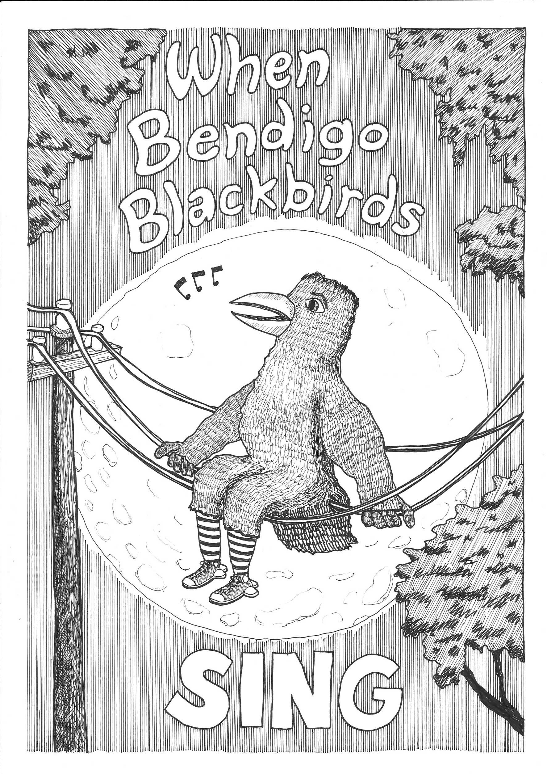 The Chant of the Big Black Birds of Bendigo is now available at Sticky Institute . 64 pages, black and white with colour cover, A5 size, $7.50.